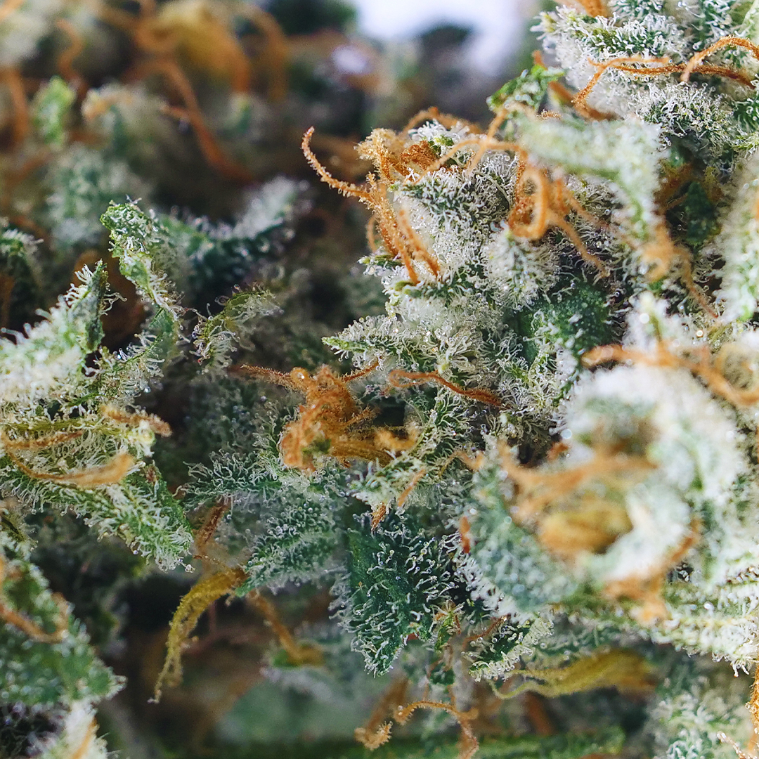 Yuck Mouth’s appearance is a visual treat that reflects its genetic heritage. The buds are small, rounded, and adorned with an emerald green hue. Thin yellow-orange hairs add contrast and beauty to the overall appearance. What truly sets these buds apart is the generous coating of chunky amber crystal trichomes, which glisten and shimmer in the light. Yuck Mouth is a sight to behold, even for the most discerning cannabis enthusiasts.